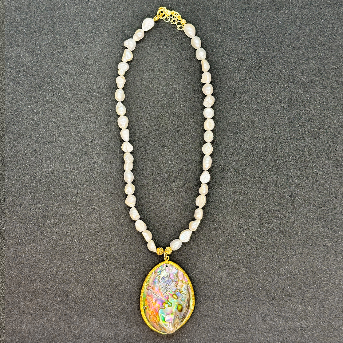 / Abalon Sedef Uçlu Su İncili Kolye