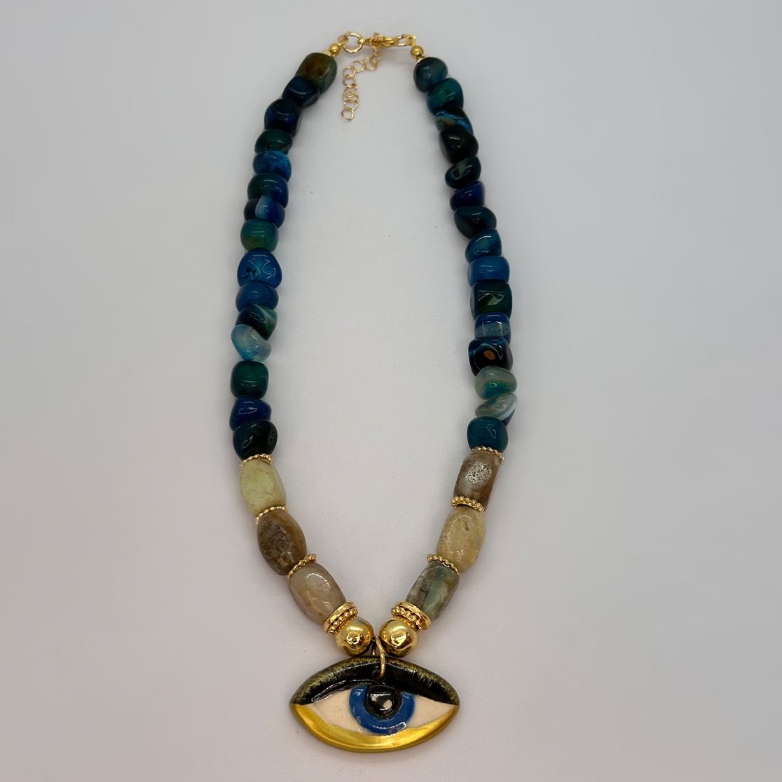 / Akik Doğaltaş Tasarım Seramik Göz Kolye