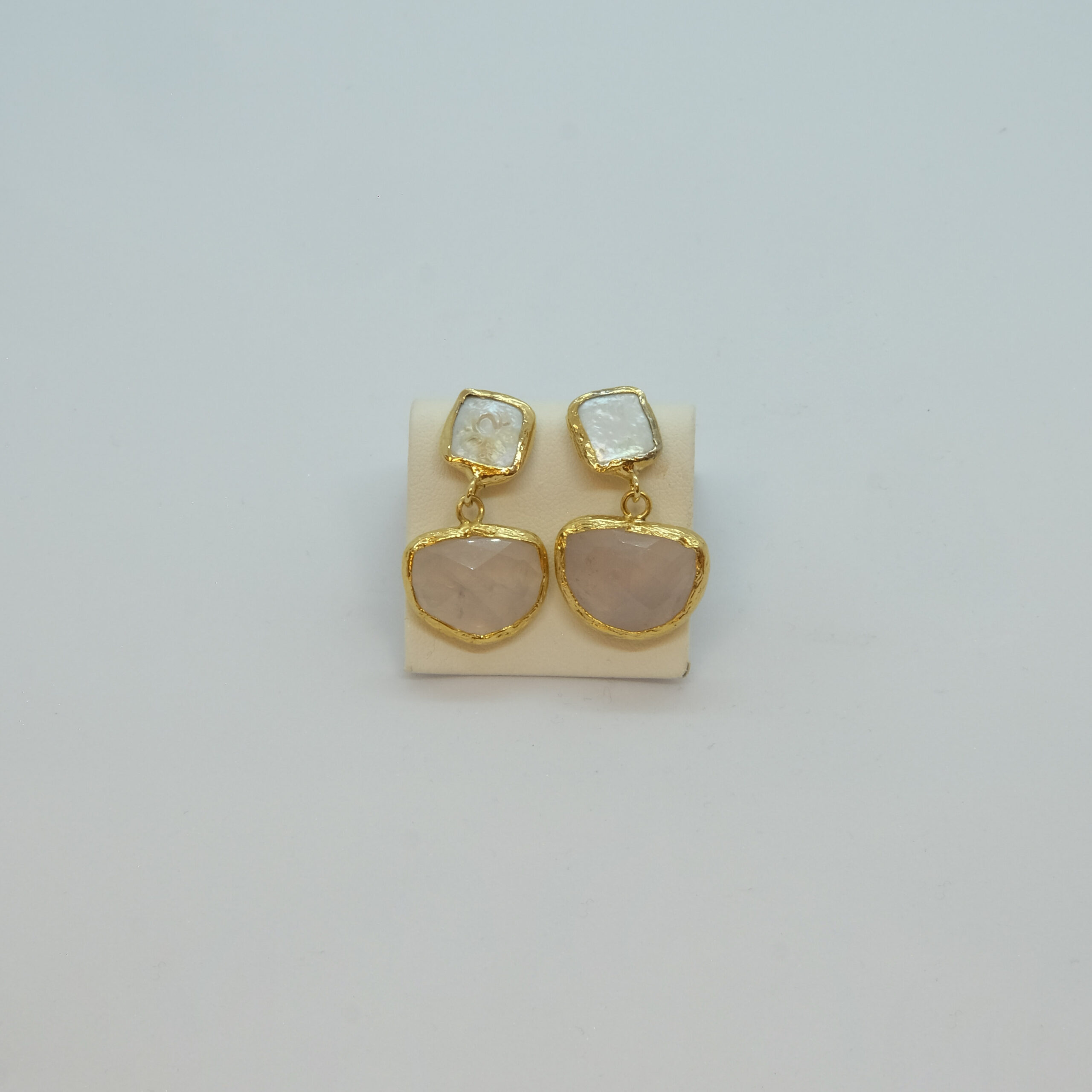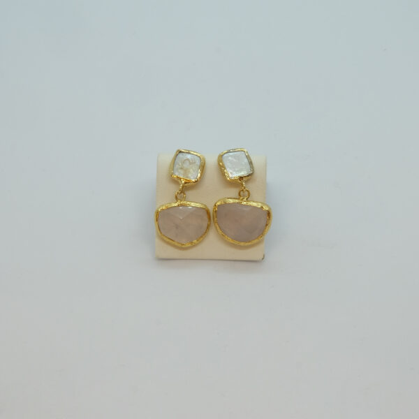 / Altın Kaplama Kedi Gözü Pembe İncili Küpe