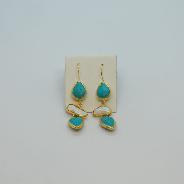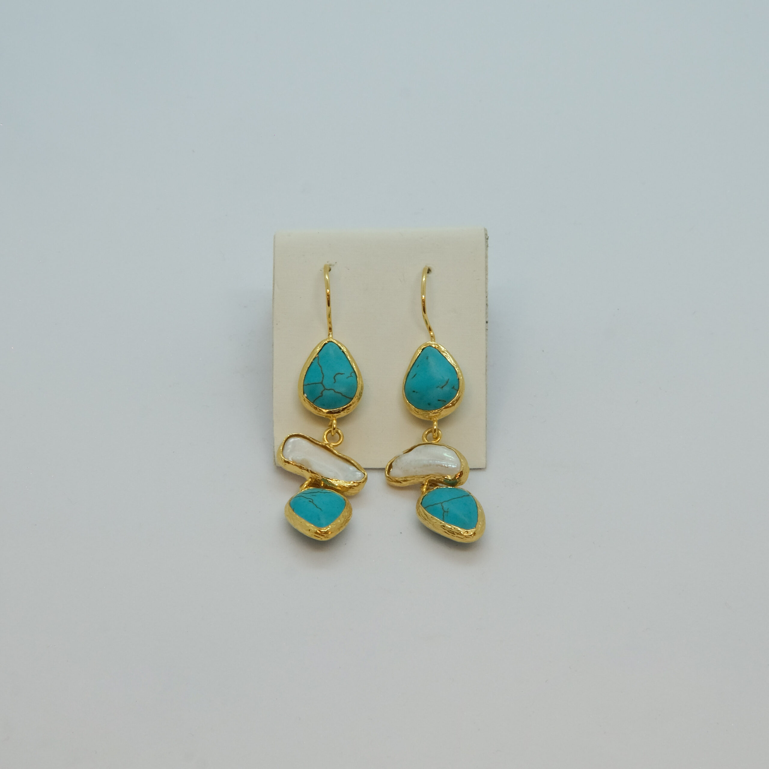 / Altın Kaplama Turkuaz Taşlı İncili Küpe