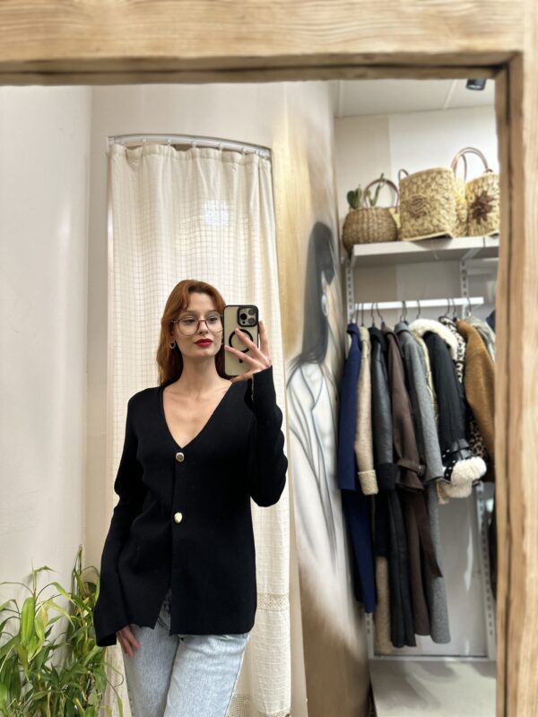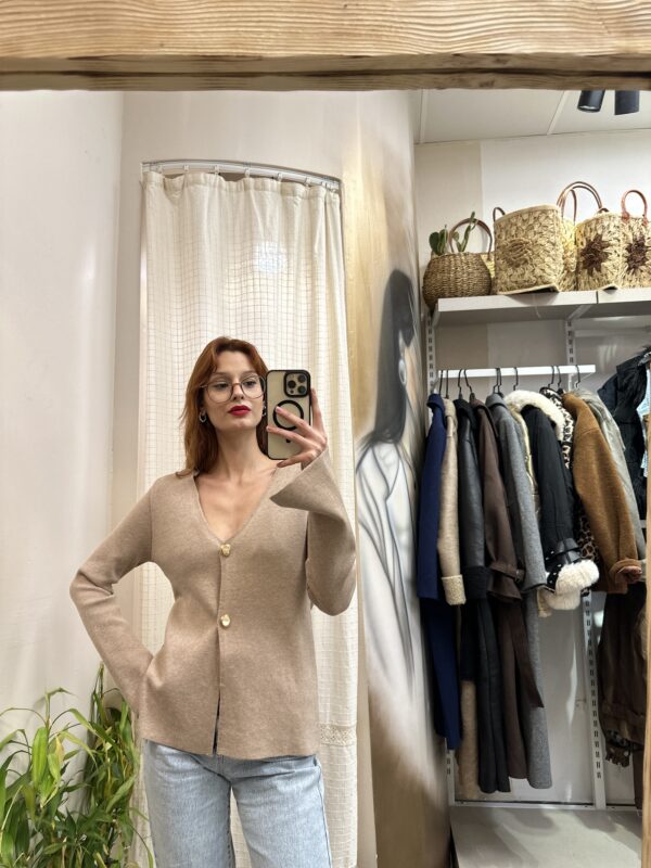 Bej Gold Düğmeli Kolu Yırtmaçlı Triko Hırka