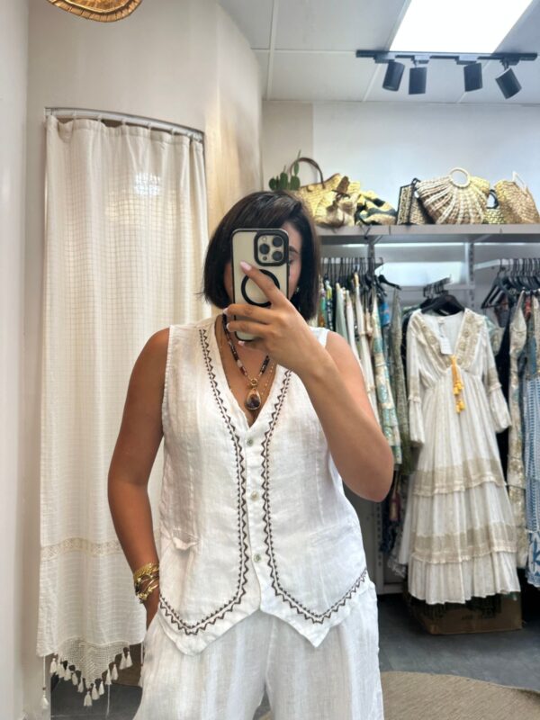 Beyaz Keten Yelek