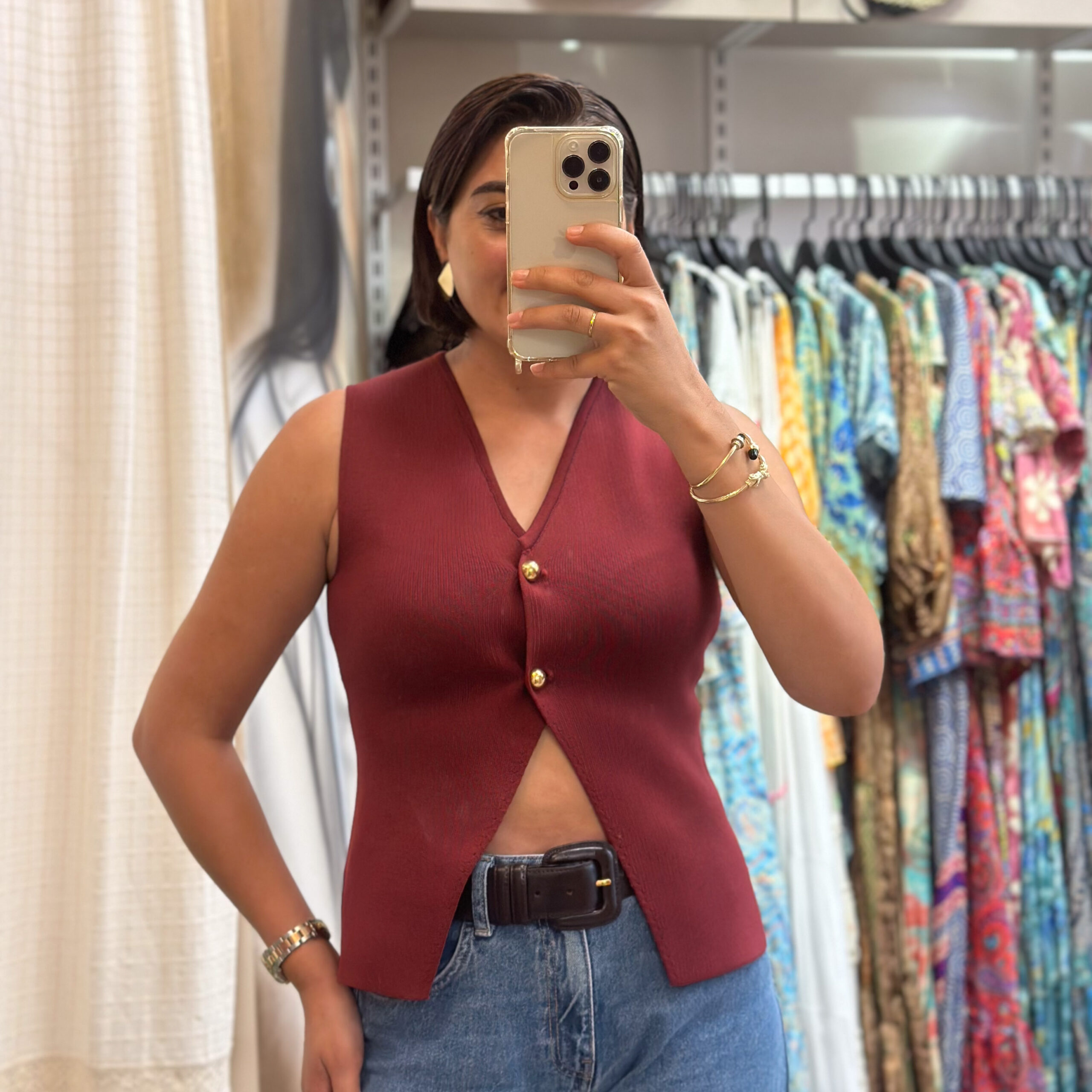 Bordo Caprio Gold Düğmeli Yelek