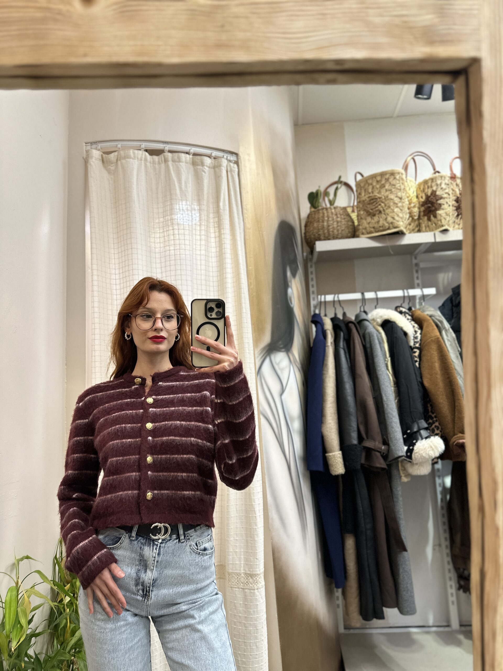Bordo Çizgili Yumoş Hırka