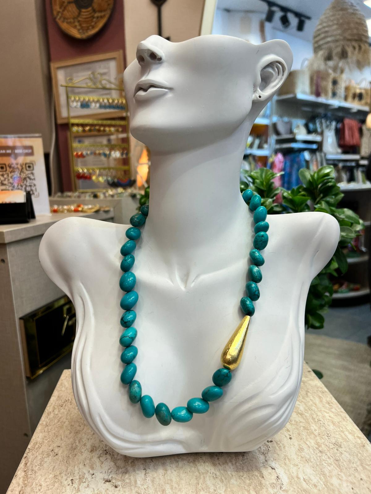 / FİRUZE TAŞLI GOLD DETAYLI KOLYE