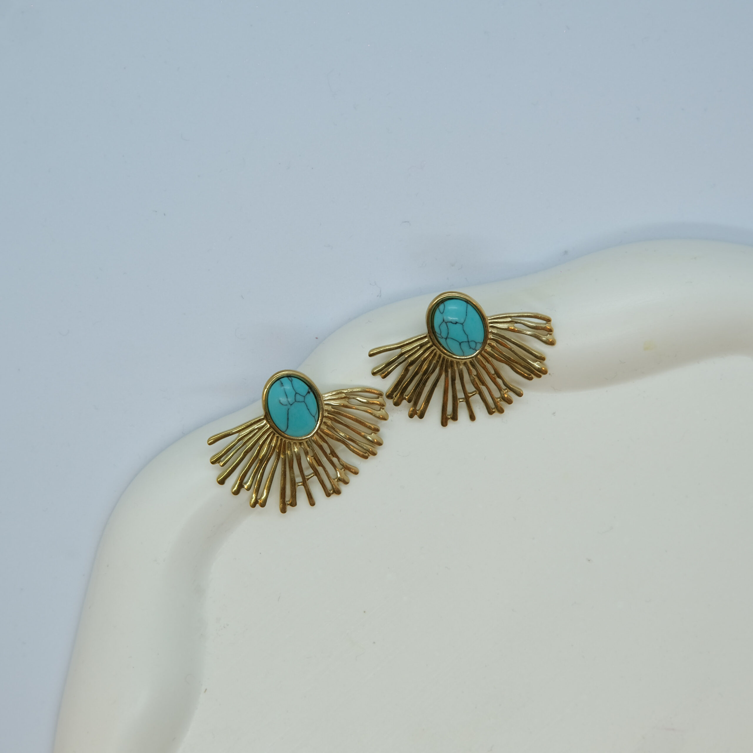 Altın Kaplama Turkuaz Taşlı İncili Küpe
