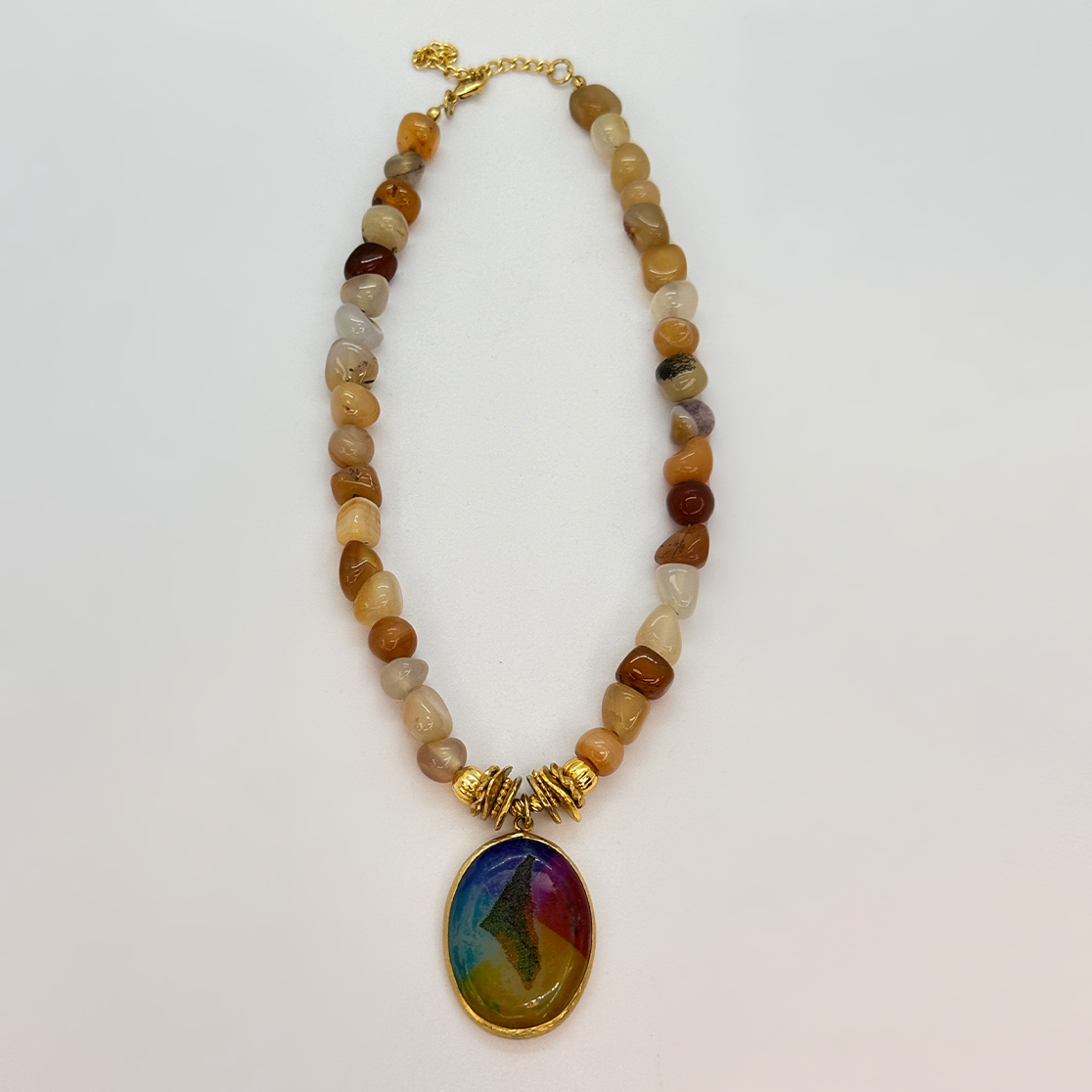 Gökkuşağı Güneş Kuvars Uçlu Ametist Kolye