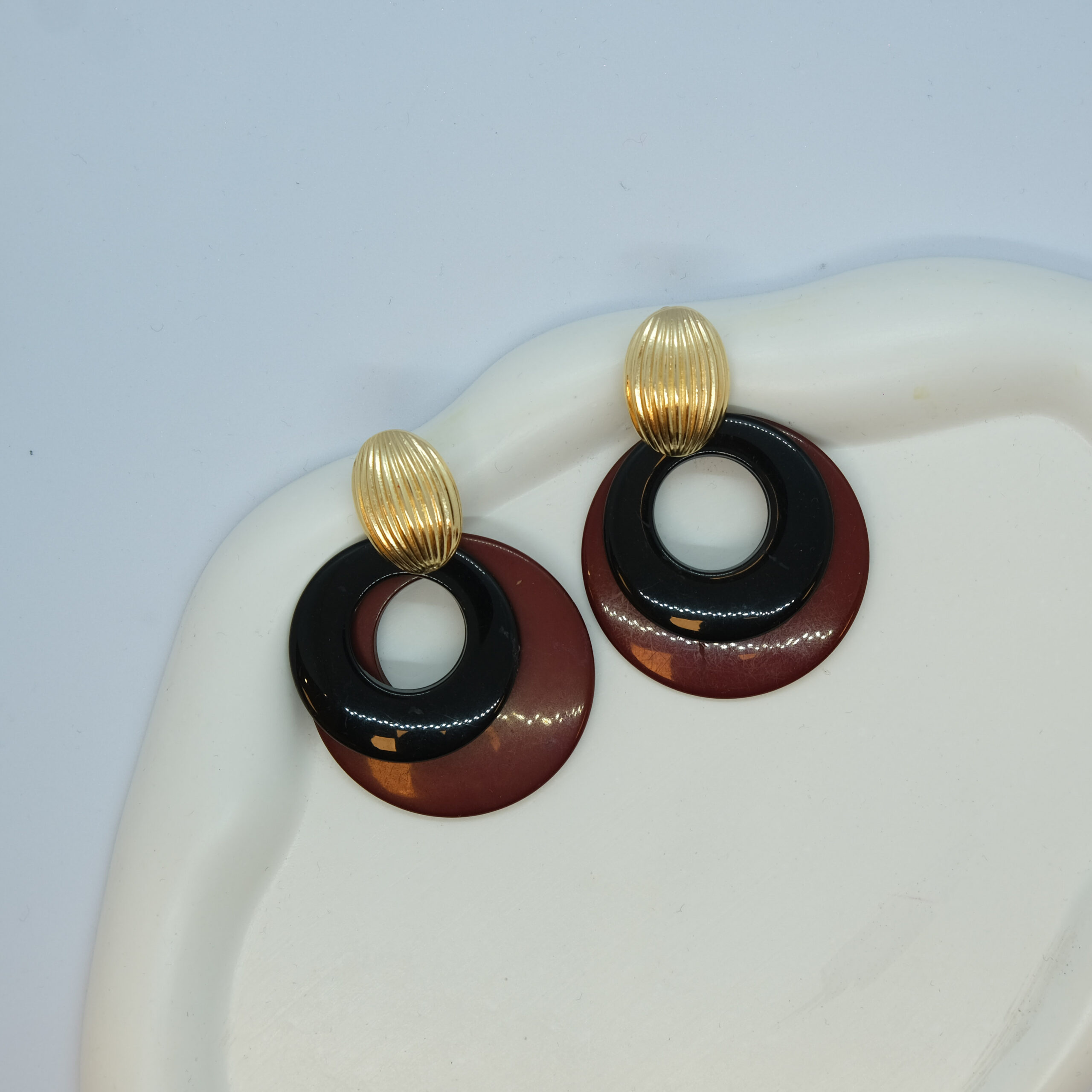 Gold Detaylı Bordo-Siyah Küpe TD-145 adet