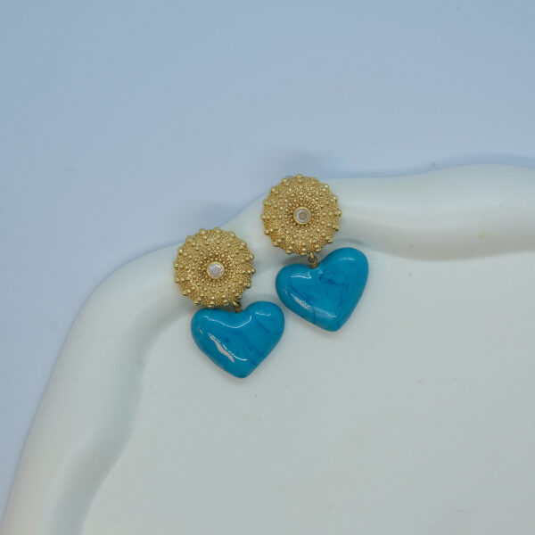 Gold Detaylı Mavi Kalp Küpe TD-135