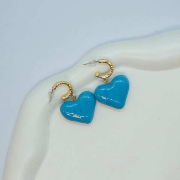 Gold Detaylı Mavi Kalp Küpe TD-141 adet