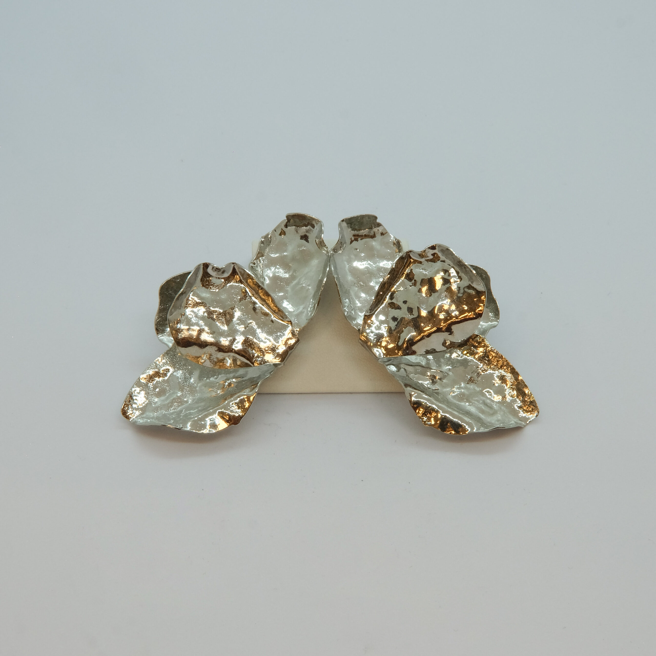 / Gümüş Kaplama Plaka Yaprak Küpe