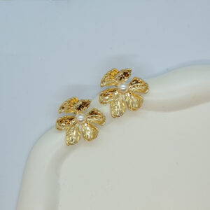 İnci Taş Detaylı Gold Çiçek Küpe TD-165