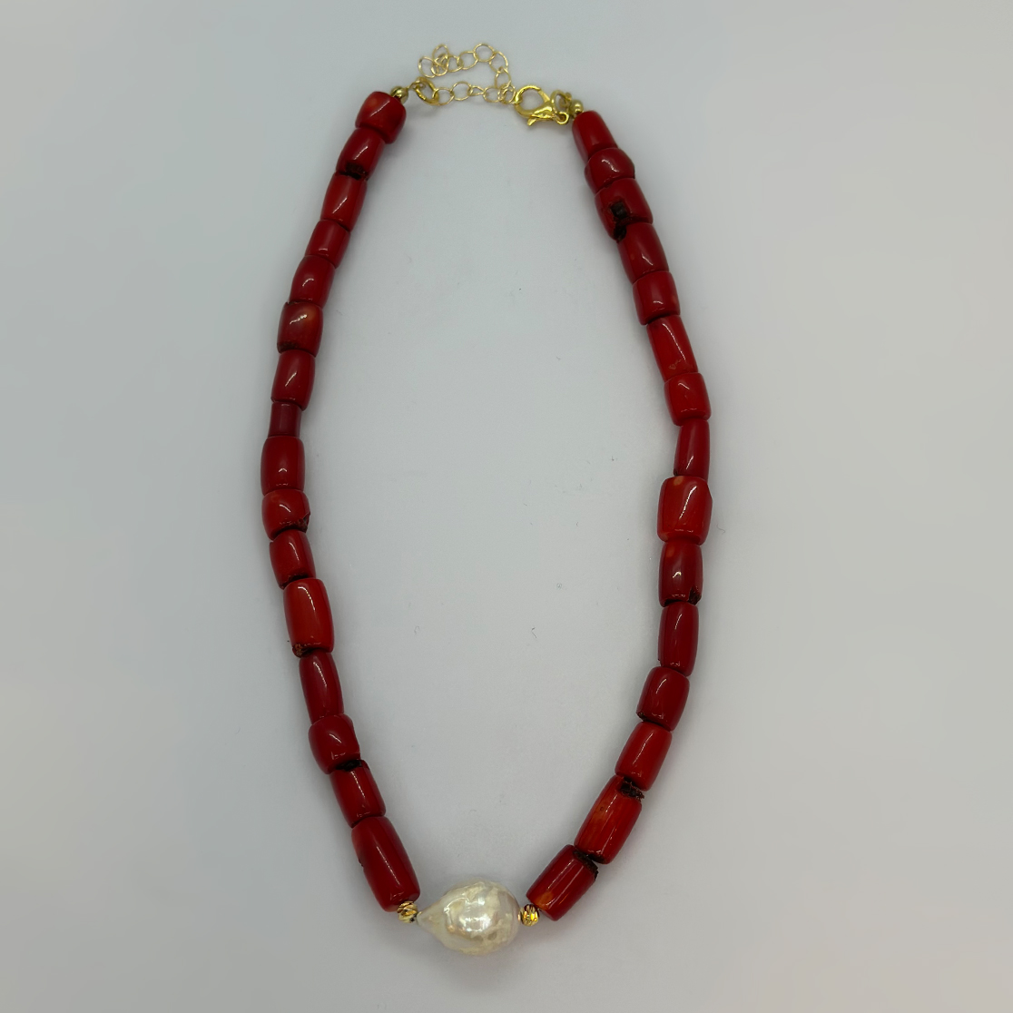 / İnci Uçlu Mercan Doğaltaş Kolye