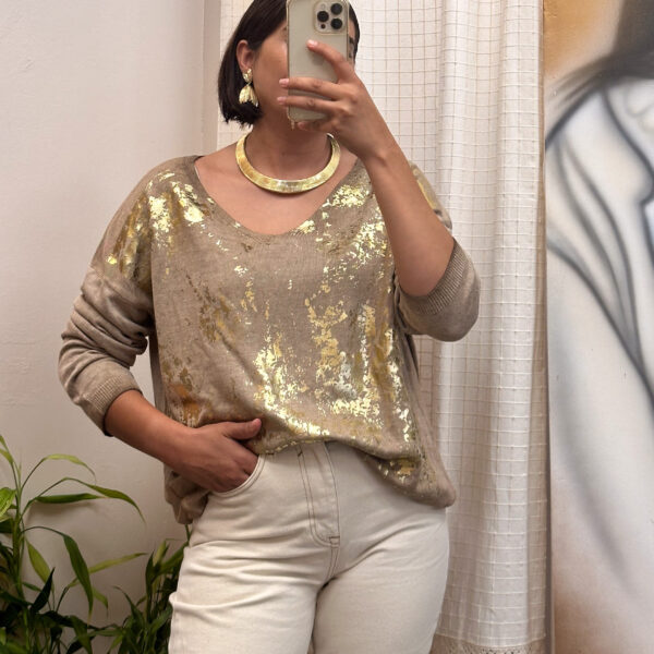 İtalyan Kahverengi V Yaka Uzun Kol Triko Kazak
