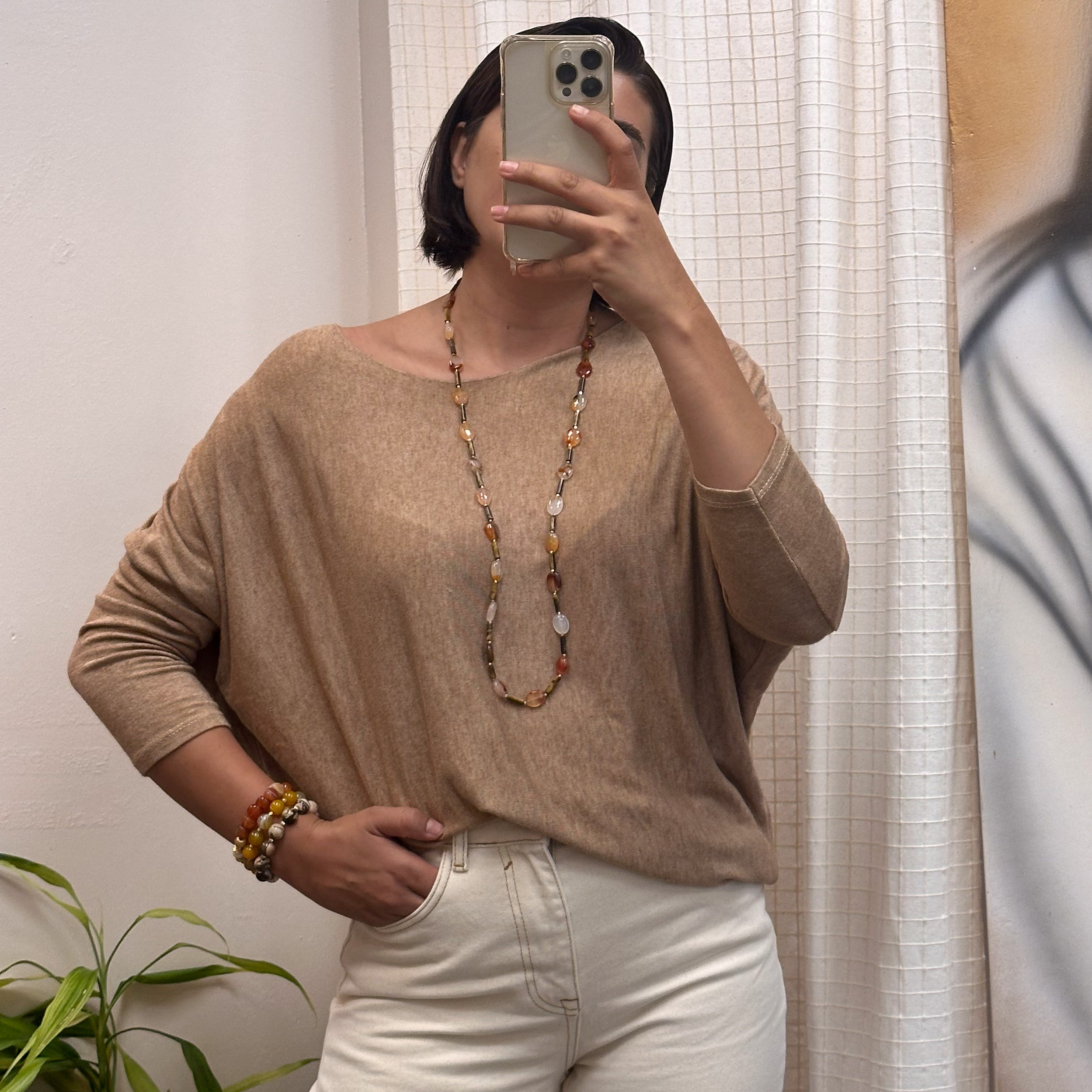 İtalyan Kahverengi Yarasa Kollu Triko Kazak