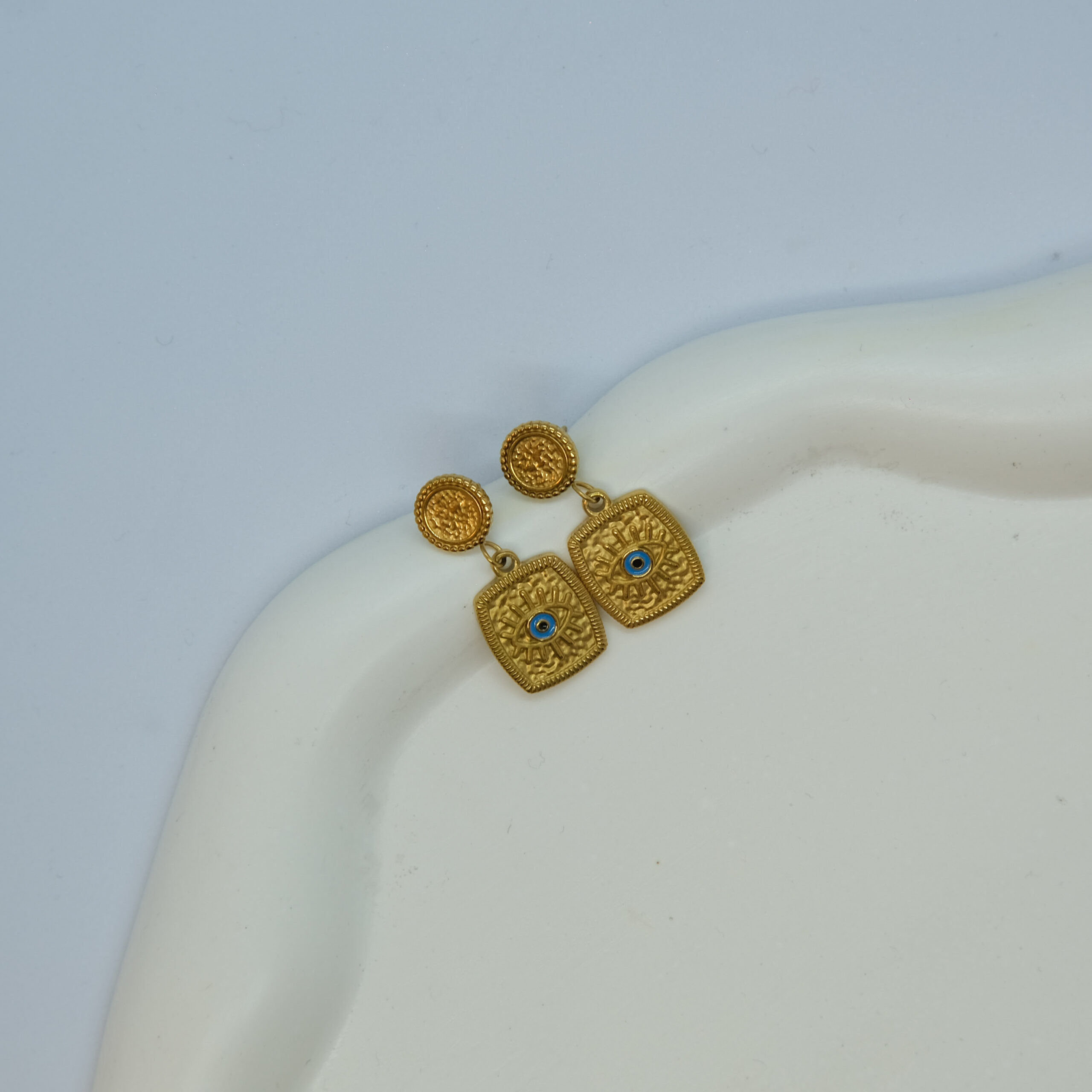 Kare Göz Desenli Gold Küpe TD-127 adet