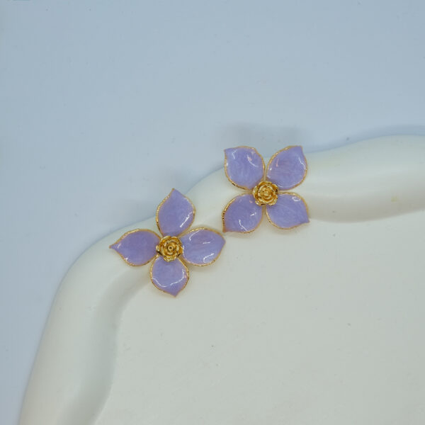 Lila Gül Detaylı Çiçek Küpe TD-140 adet