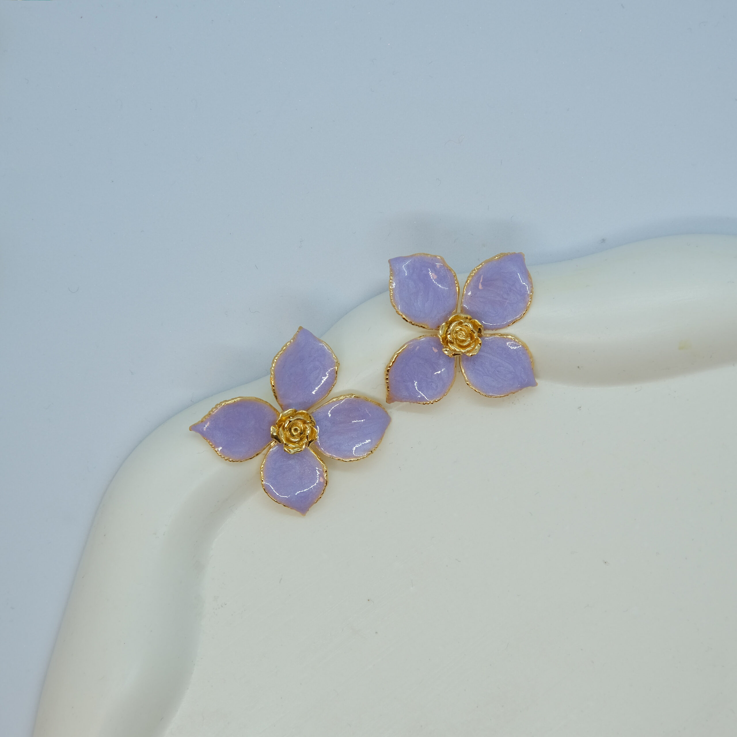 / Lila Gül Detaylı Çiçek Küpe TD-140