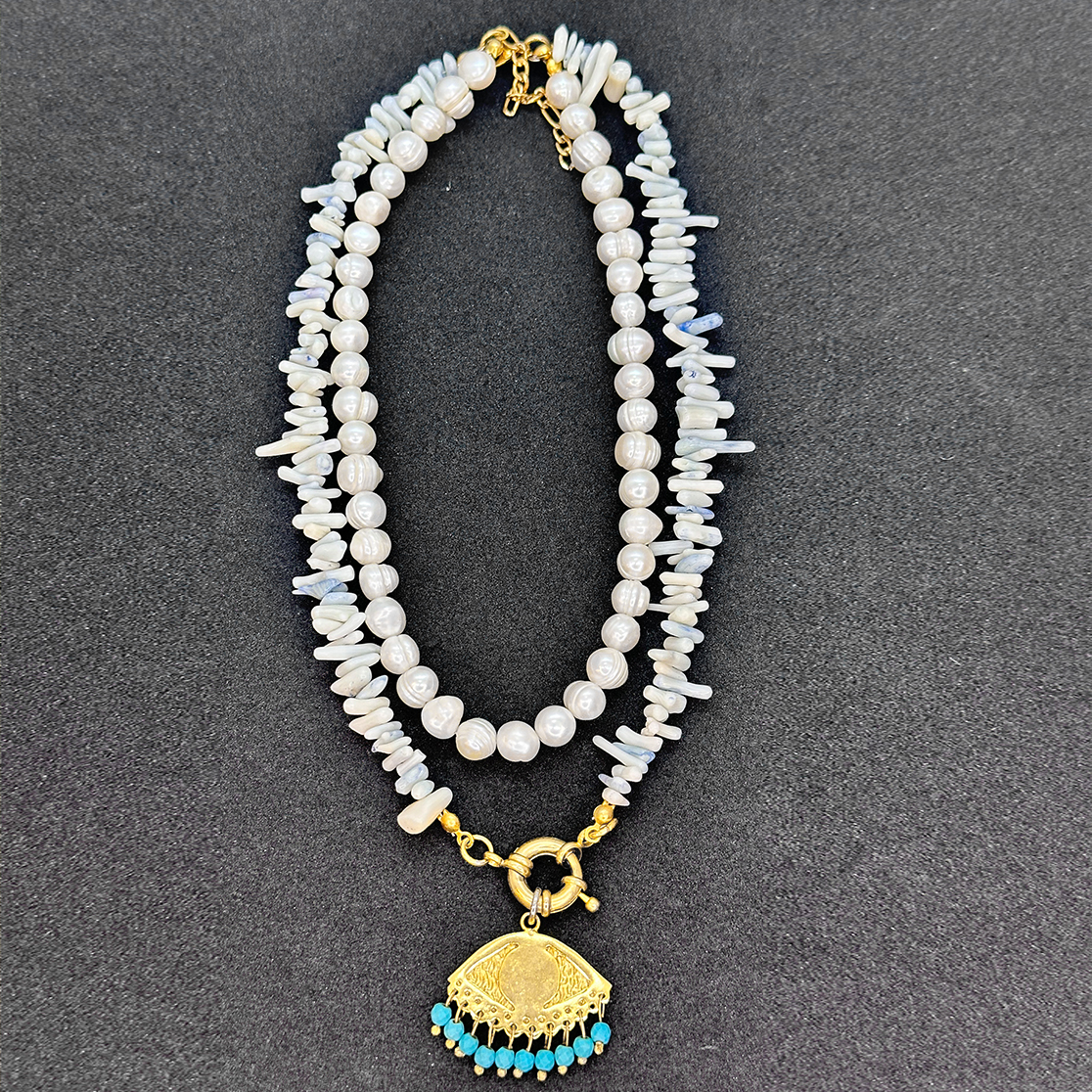 / Mavi Mercan Tasarımlı Su İncili Kolye