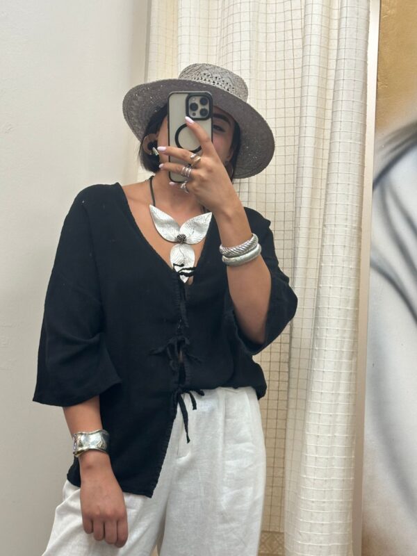 Siyah Önü Bağlamalı Bluz