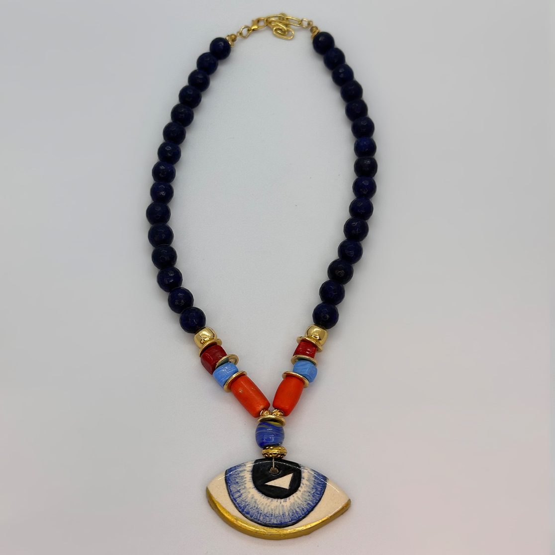 / Tasarım Lapis Lazuli Taşlı Seramik Göz Kolye