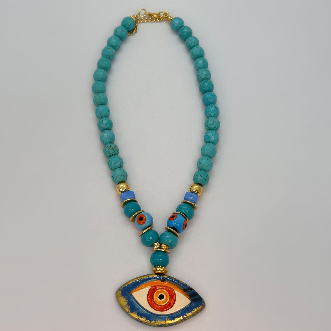 Tasarım Turkuaz Doğaltaş Seramik Uçlu Göz Kolye adet