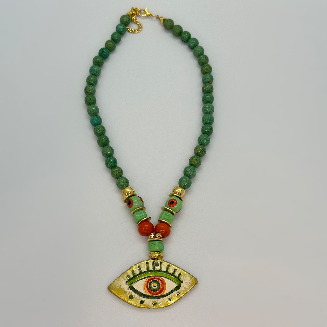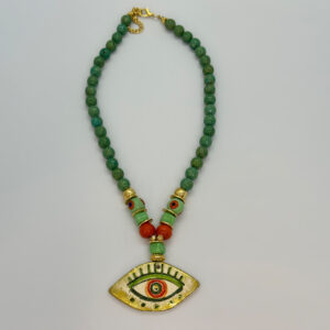 Yeşil Amazonit Taşlı Ucu Seramik Göz Kolye