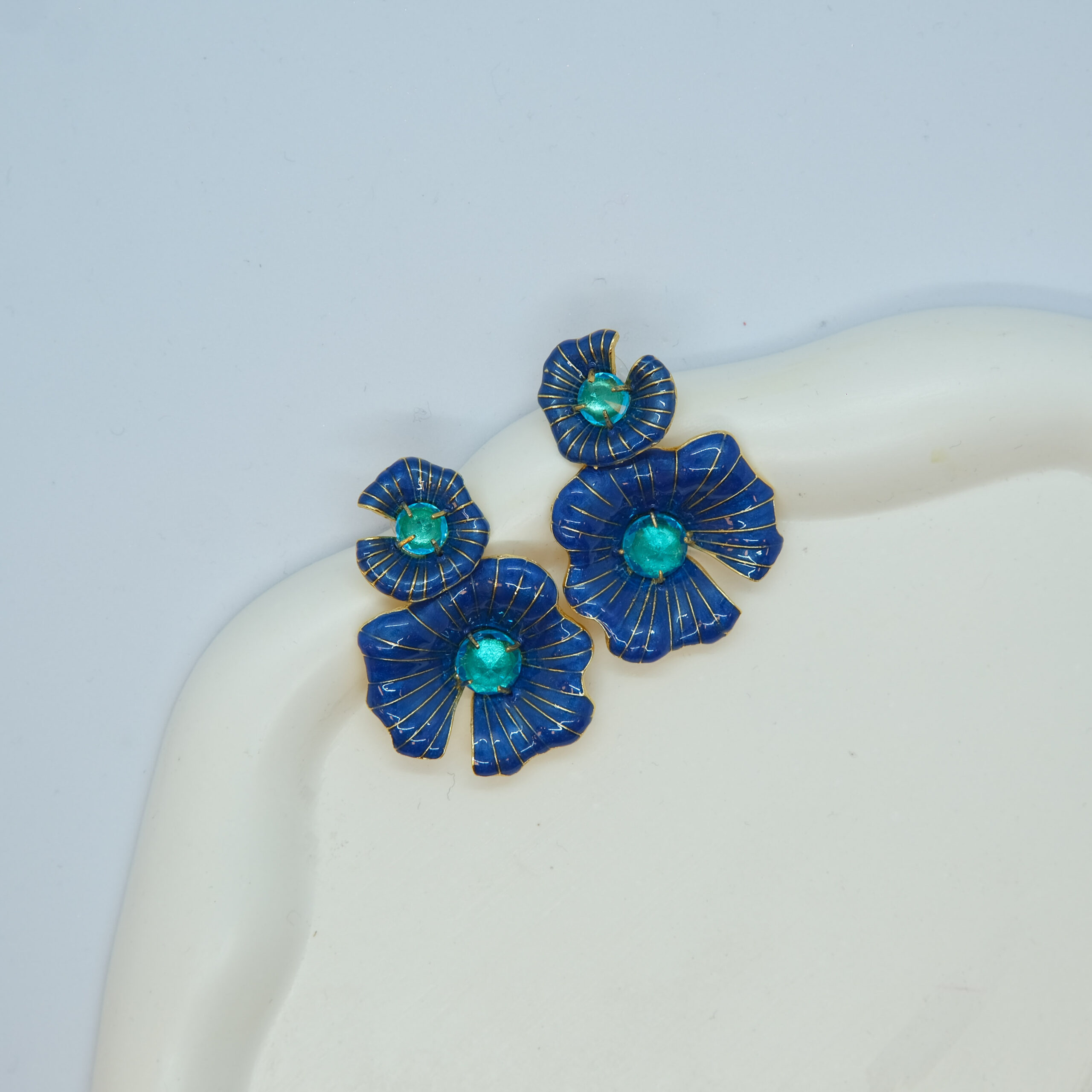 Zirkon Taş Detaylı Mavi İkili Çiçek Küpe TD-150 adet